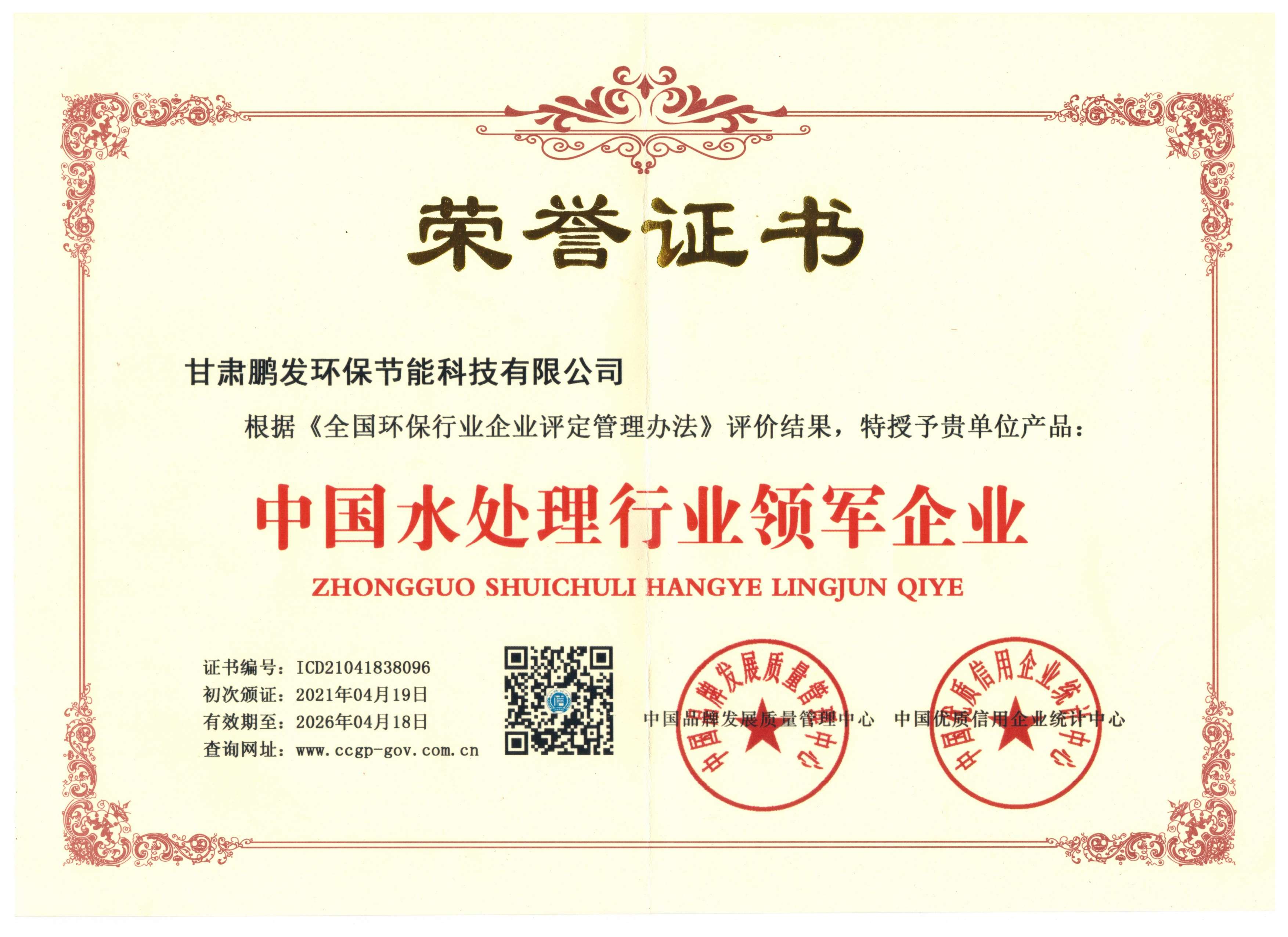 領(lǐng)軍企業(yè)榮譽證書