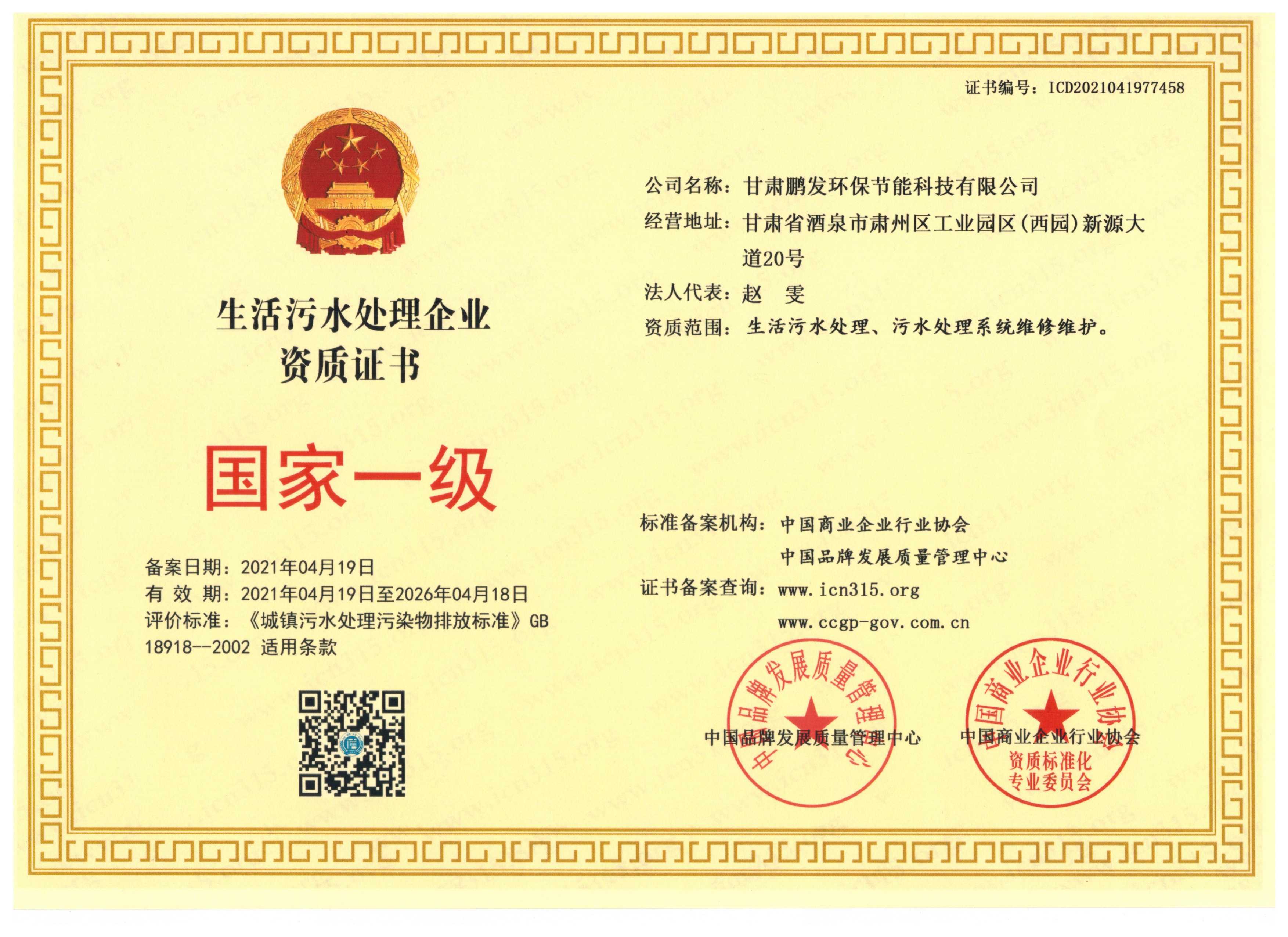 生活污水處理資質(zhì)證書