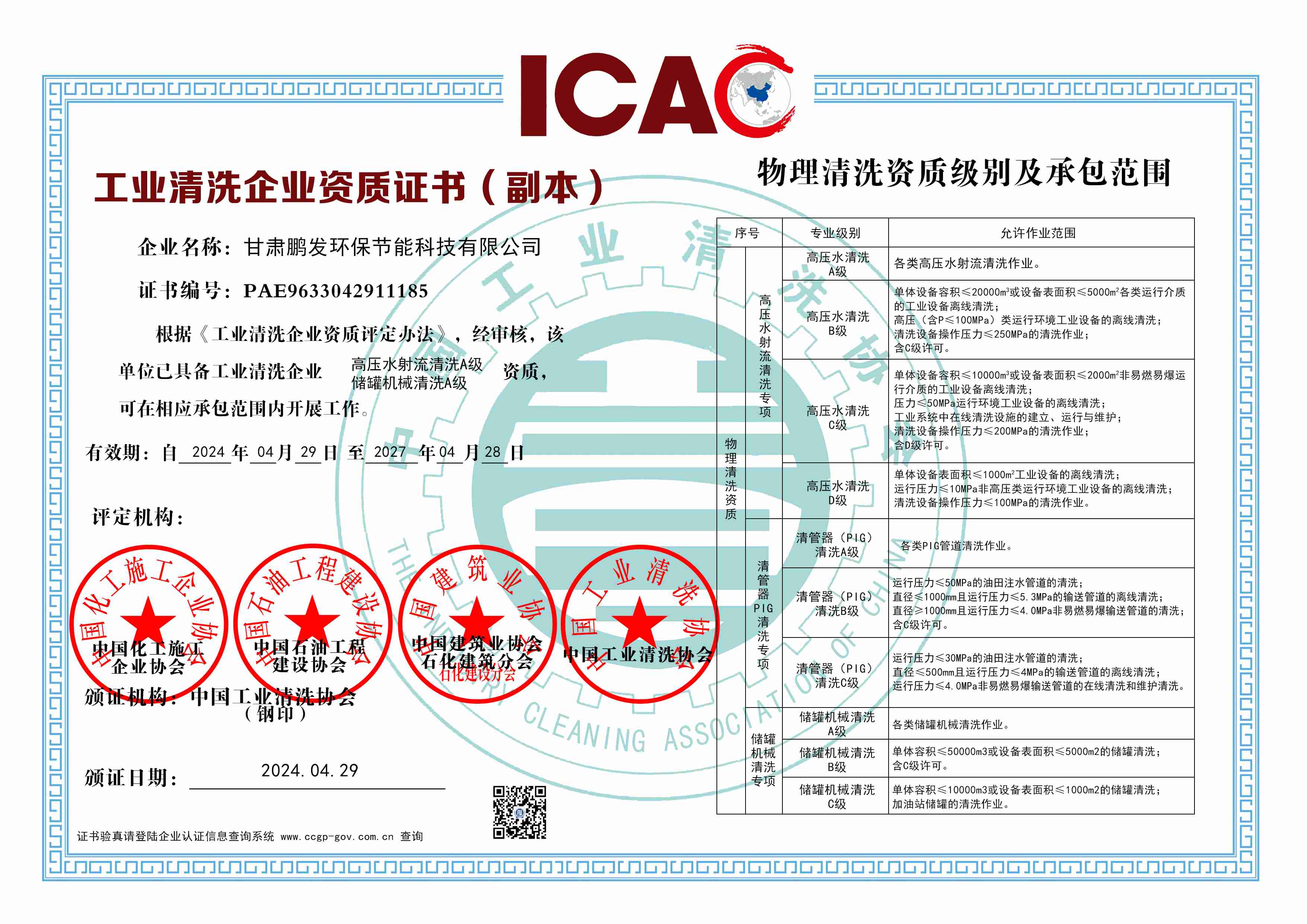工業(yè)清洗資質(zhì)