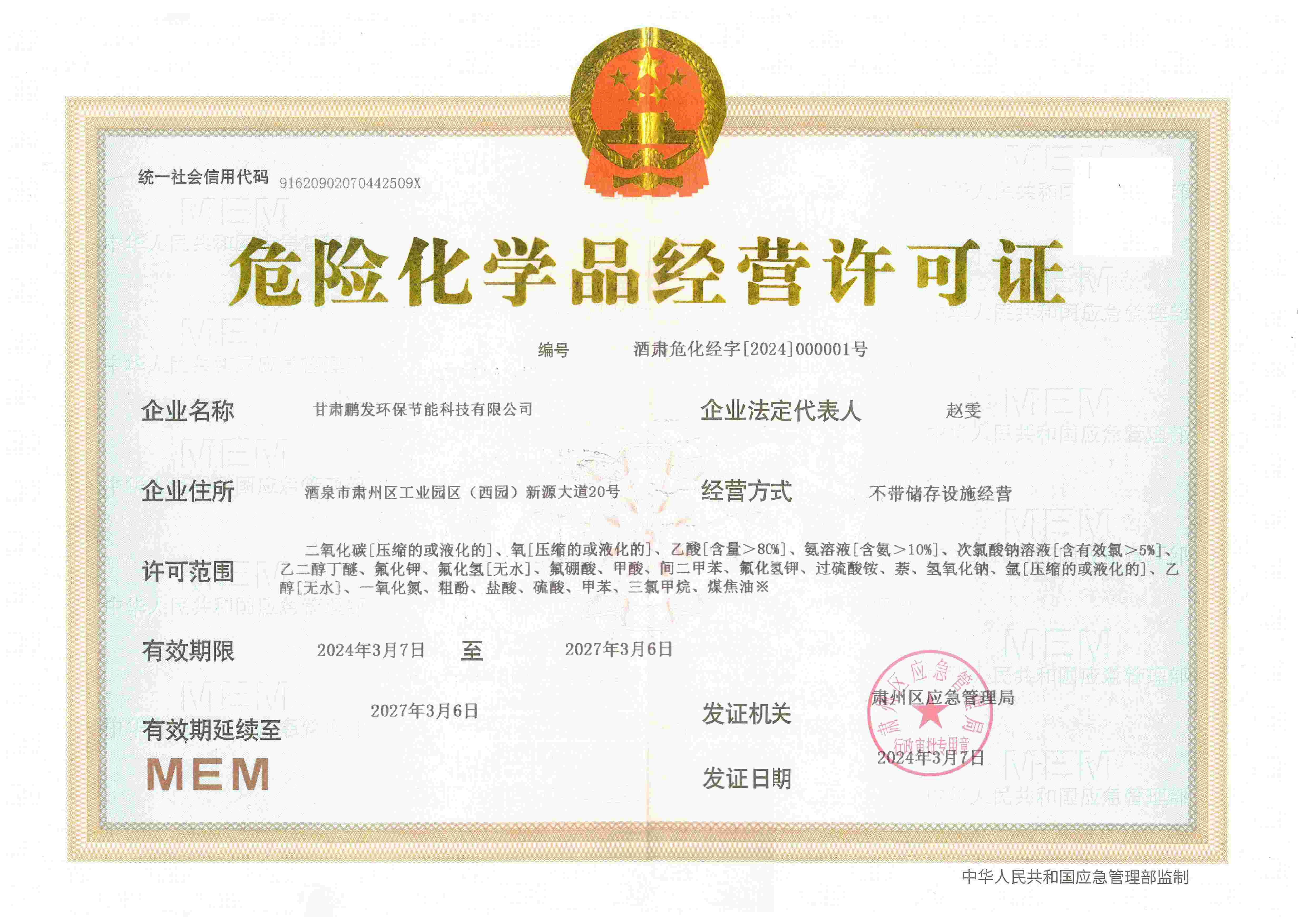 危險化學品經(jīng)營許可證
